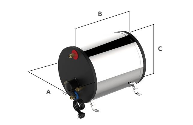 Utvendig består tanken av eloksert aluminium. Varmeelementet kan tas ut for inspeksjon av tanken innvendig.