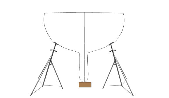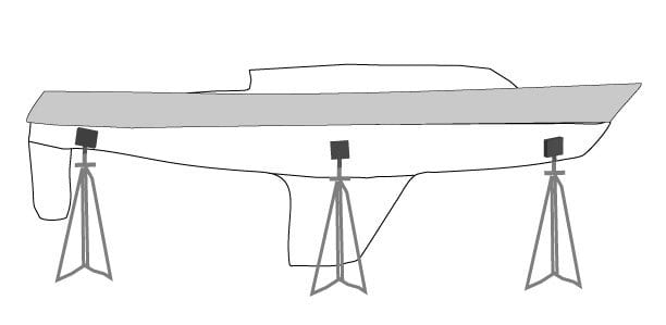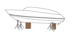 Plasser støttene slik at de danner ca. 90 graders vinkel mot skroget. Trykket fra båten skal i størst mulig grad forplante seg ned gjennom senter av støtten og til bakken.