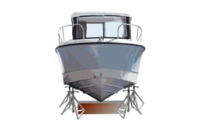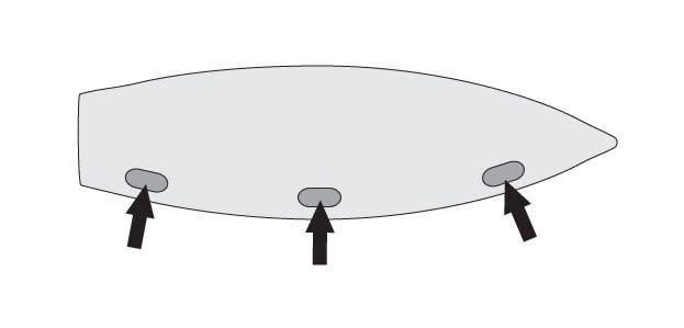 La støttene peke innover i båten parallelt med skrogets vinkel.