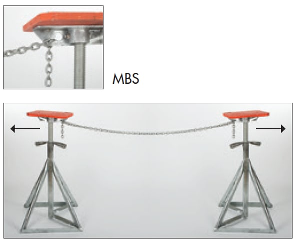 Støttene skal festes parvis til hverandre med lastestropper eller kjetting.