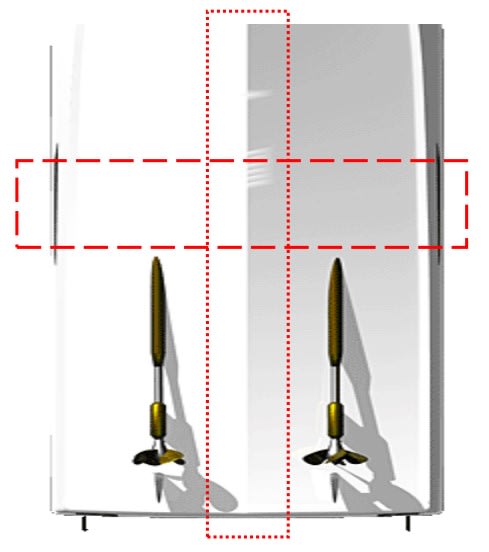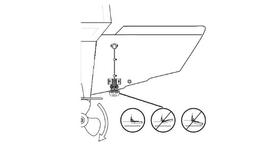 - På båter med dobbel motorinstallasjon bør giveren plasseres mellom motorene dersom dette er mulig.