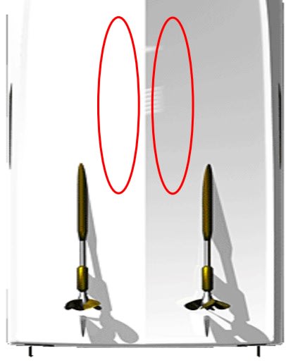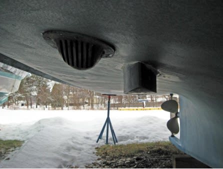 Sjøvannsinntaket på disse bildene vil skape turbulens rundt giveren og luftbubbler vil gjøre at resultatet blir dårlig når farten på båten øker. Giveren vil fungere perfekt når du ligger stille eller går på tomgang, men så fort farten øker vil giver miste kontakt med bunnen.