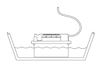 - Giveren skal monteres slik at den går parallelt med vannlinjen (må ikke monteres skrått)