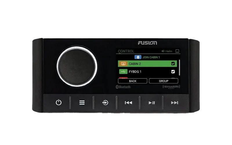 - Få stor musikalsk valgfrihet med Fusions PartyBus™-Network-teknologi (tilgjengelig ved tilkobling via Ethernet til en trådløs nettverksruter (selges separat), en Garmin multifunksjonsskjerm eller et stereonettverk i Apollo-serien aktivert med Wi-Fi teknologi)