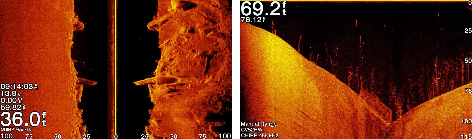 Med et Garmin CHIRP ClearVü-søkeekkolodd får du et nesten fotografisk bilde av hva som befinner seg under båten. Med Garmin CHIRP SideVü™ får du se med utrolige detaljer hva som befinner seg ved siden av båten. Du kan tydelig se strukturer, fisk og objekter under vann.