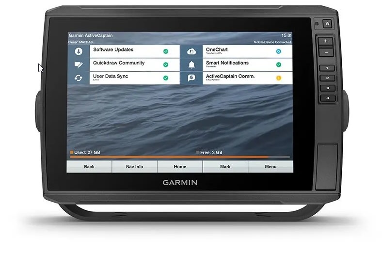 Kan parkobles via en innebygd Wi-Fi® -tilkobling med mobilappen (gratis) for tilgang til OneChart™-funksjonen, smartvarsler2, programvareoppdateringer, Garmin QuickDraw-fellesskapsdata med mer.