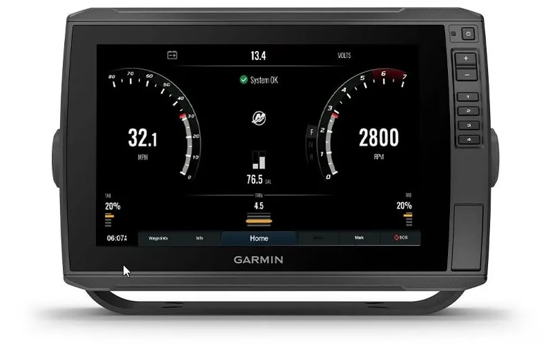 Koble denne kartplotteren til forskjellige typer motorer, inkludert utvalgte Mercury- og Yamaha®-modeller, for å få oversikt over turtall, drivstoffstrøm, temperatur, trim og annen viktig informasjon raskt. Du trenger kanskje ekstra maskinvare, så sørg for å sjekke dette med motorprodusenten.