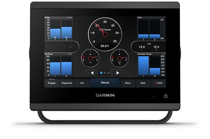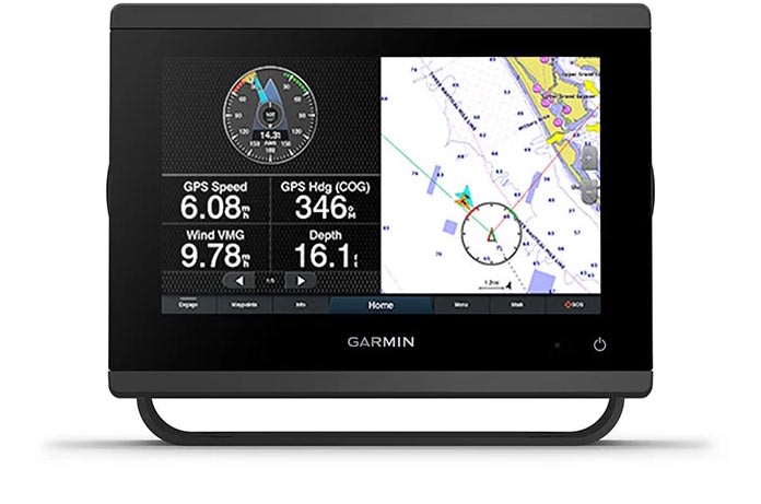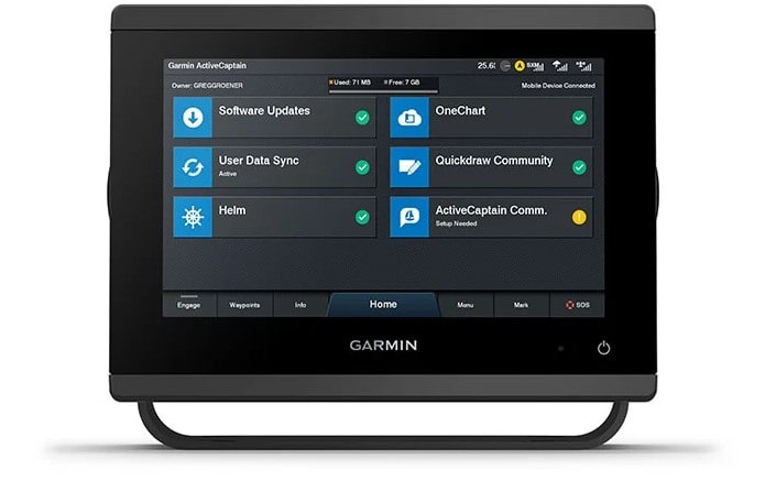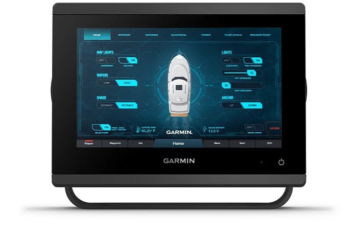 Kan parkobles via en innebygd Wi-Fi® -tilkobling med mobilappen for å få tilgang til OneChart™-funksjonen, smartvarsler, programvareoppdateringer, digital Garmin Helm™-regulering, Garmin Quickdraw™-felleskapsdata med mer.