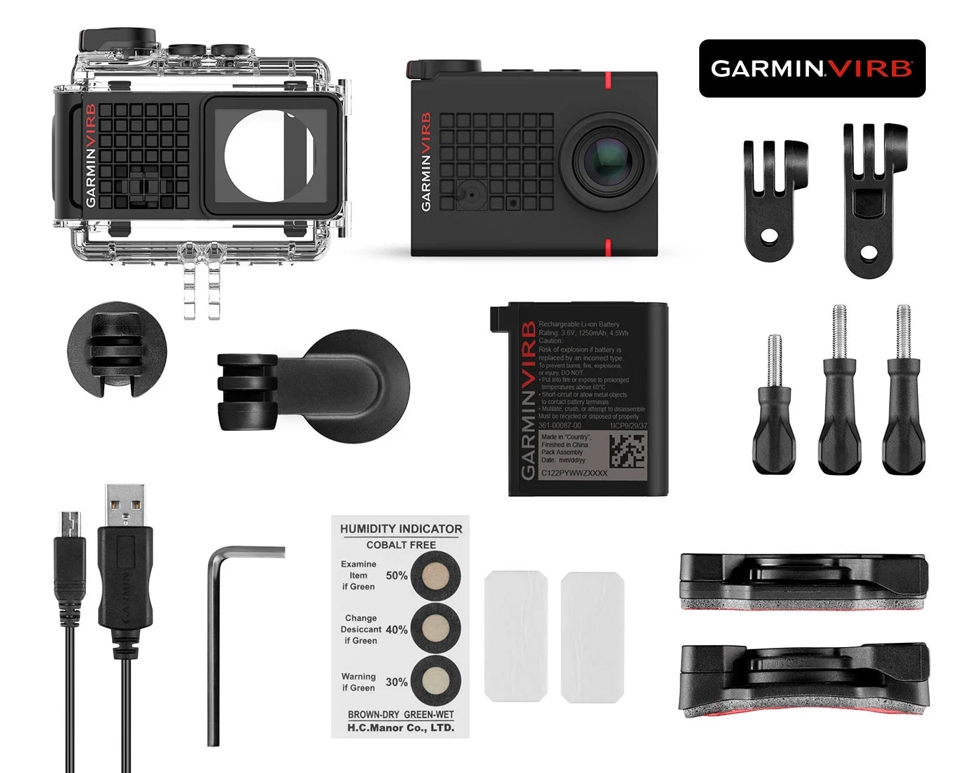 - Med værbestandig (IPX7) strømholder med festet 10 m uisolert kabel for direkte tilkobling til strømkilde. Kabelen kan enkelt trimmes til installasjon på motorsykkel om ønskelig. Kompatibel med VIRB-braketter