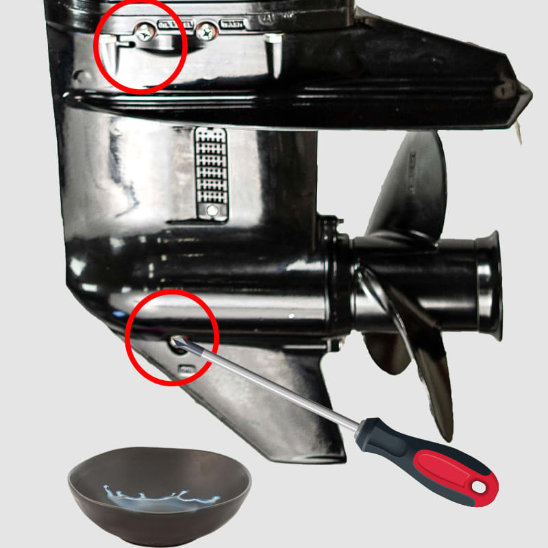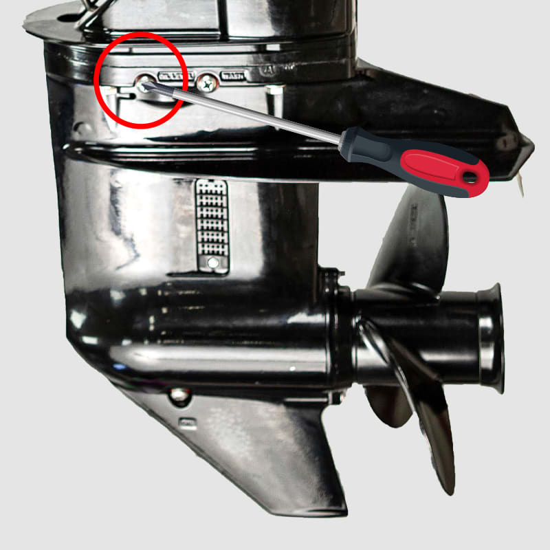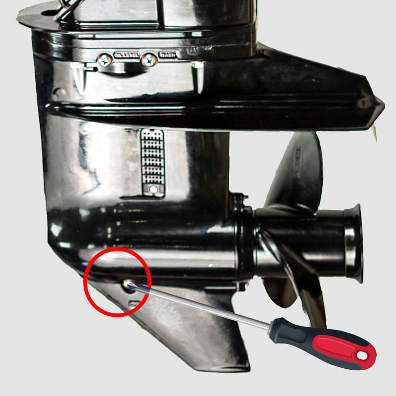 Det finnes to tappeskruer på girhuset på påhengsmotoren, en oppe på girhuset og en i nederdel av girhuset.