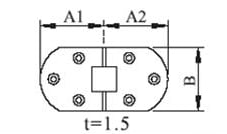 Bordhengsle i syrefast stål. Lengde: 76mm Bredde: 38 mm Skruedim: 4.2 mm