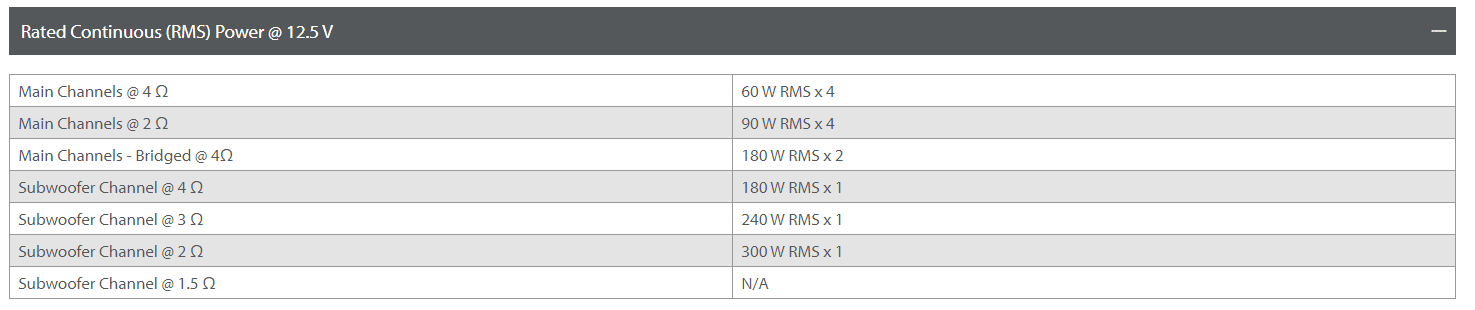 - 75W x 2 + 250W x 1 @ 4ohm