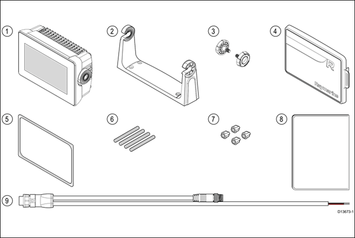 9. Strømledning / NMEA 2000-ledning (med 1,5 m strømledning og 0,5 m NMEA 2000-ledning).