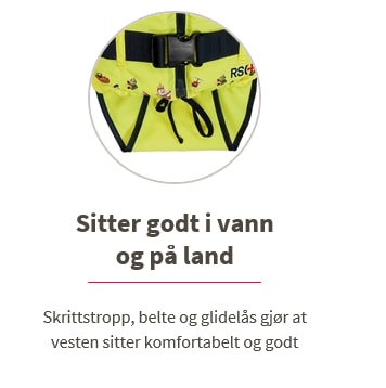 En testvinnende redningsvest som er komfortabel for barnet både stående og sittende.