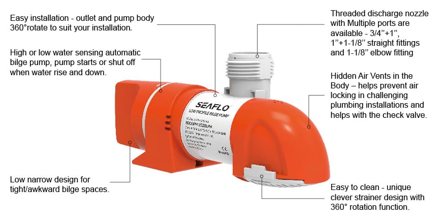 Lavprofil lensepumpe med innebygget lenseautomatikk.