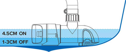 Pumpen starter automatisk når vannivået når 4,5 cm opp på pumpen og stopper når vannet er lenset ut.