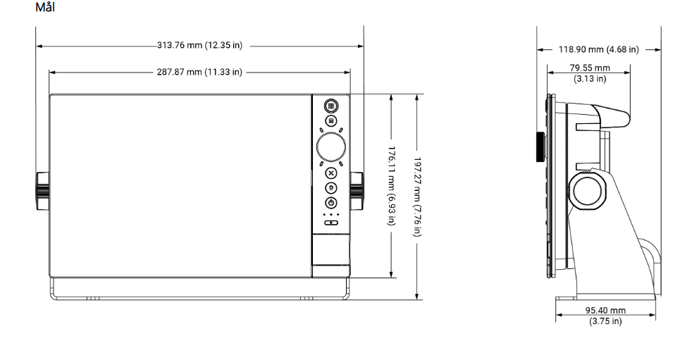 Echosounder: Ekkolodd: lav, middels og høy CHIRP opptil 1 kW, Downscan: 455 kHz, 800 kHz, 700 kHz CHIRP, 1200 kHz CHIRP, Sidescan: 455 kHz, 800 kHz, 455 kHz CHIRP, 1200 kHz CHIRP