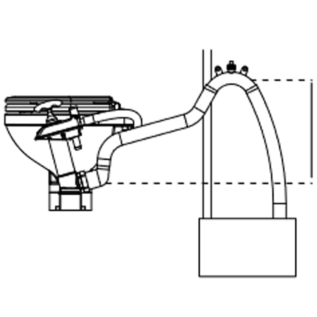 For å unngå at sjøvann renner inn via innløpet og fyller toalettet må du montere en antihevert med lufting og lage en svanehals på slangene. Strekk inntaksslangen strakeste veien inntakskranen til spylepumpens innløpskobling. Ta bort den hvite slangen som er montert på toalettet mellom spylepumpens utløp til toalettskålens vinkelrør. Vri vinkelrøret på toalettet slik at det peker oppover. Erstatt den hvite slangen med en lengre lengde 19mm septikslange og plasser den slik at den er minst 20 cm over høyeste mulige og monter antiheverten på høyeste punkt. Gjør det samme med utløpsslangen (38 mm antihevert).